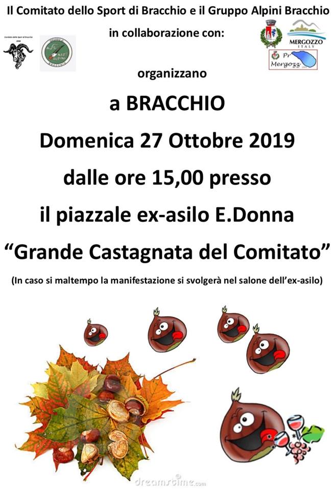 Il comitato dello Sport di Bracchio e il Gruppo Alpini di Bracchio organizza per domenica 27 ottobre alle ore 15,oo presso l'ex Asilo Donna di Bracchio " GRANDE CASTAGNATA DEL COMITATO
