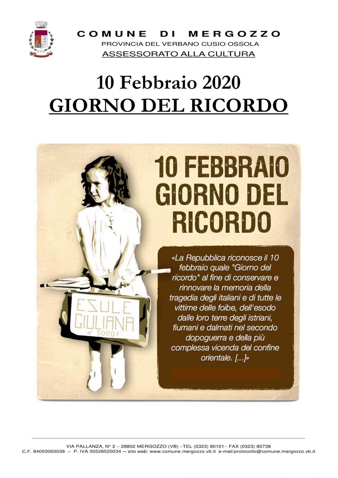 "Il Comune di Mergozzo nel Giorno del Ricordo invita la cittadinanza a non dimenticare l'immane tragedia delle Foibe Istriane"