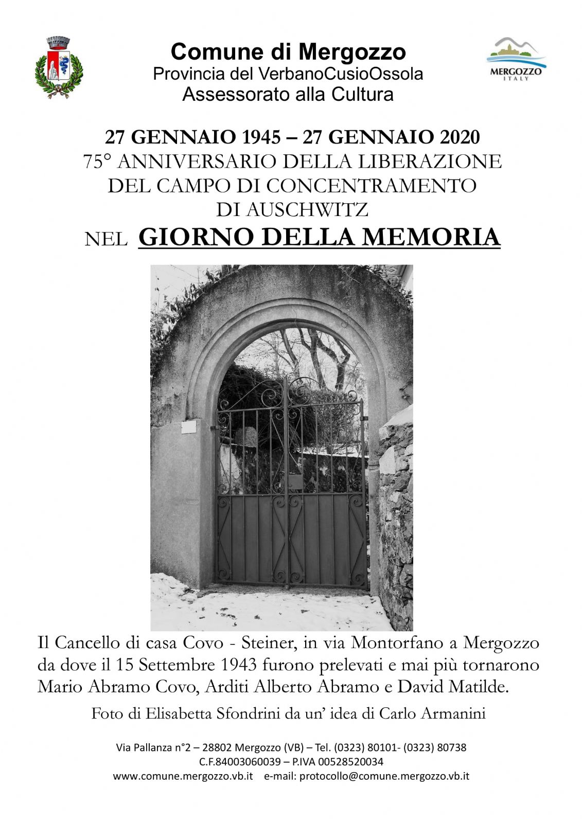 "Il Comune di Mergozzo nel Giorno della Memoria invita la cittadinanza a non dimenticare l'immane tragedia dell'eccidio degli ebrei"