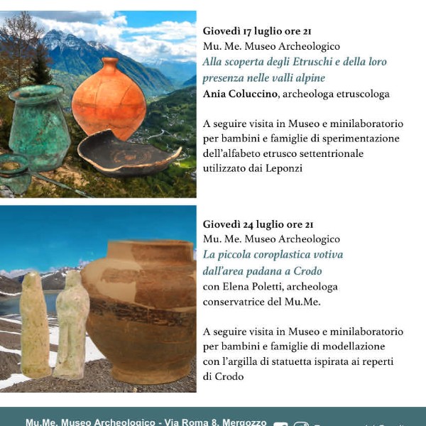 Nel corso del mese di luglio presso il Mu.Me. Museo Archeologico Mergozzo tornano i tradizionali “Giovedì del Museo e dell’Ecomuseo” per il 2025 dedicati a scoprire aspetti archeologici del tema “viaggio”, evidenziando particolari reperti della necropoli di Crodo, recentemente valorizzata attraverso l’allestimento di una vetrina dedicata intitolata “Lungo la via dei Leponti”.