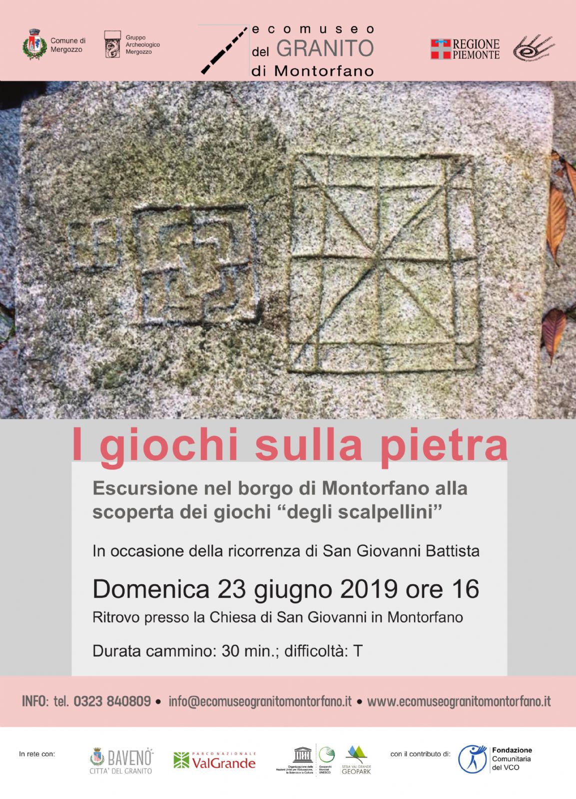 In occasione della ricorrenza di San Giovanni Battista il Comune di Mergozzo e L'Ecomuseo del Granito di Montorfano organizza " Escursione nel borgo di Montorfano alla scoperta dei giochi " degli scalpellini" .