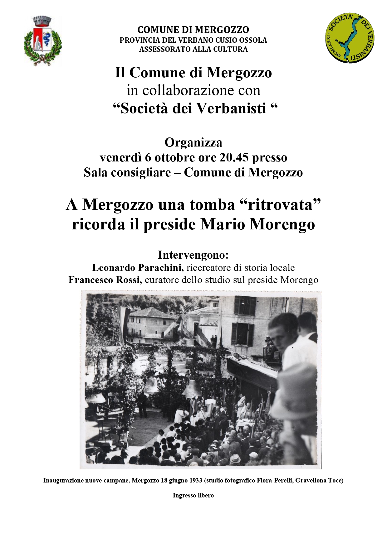 La serata, promossa dal Comune di Mergozzo, sarà introdotta da Leonardo Paracchini, ricercatore di storia locale.