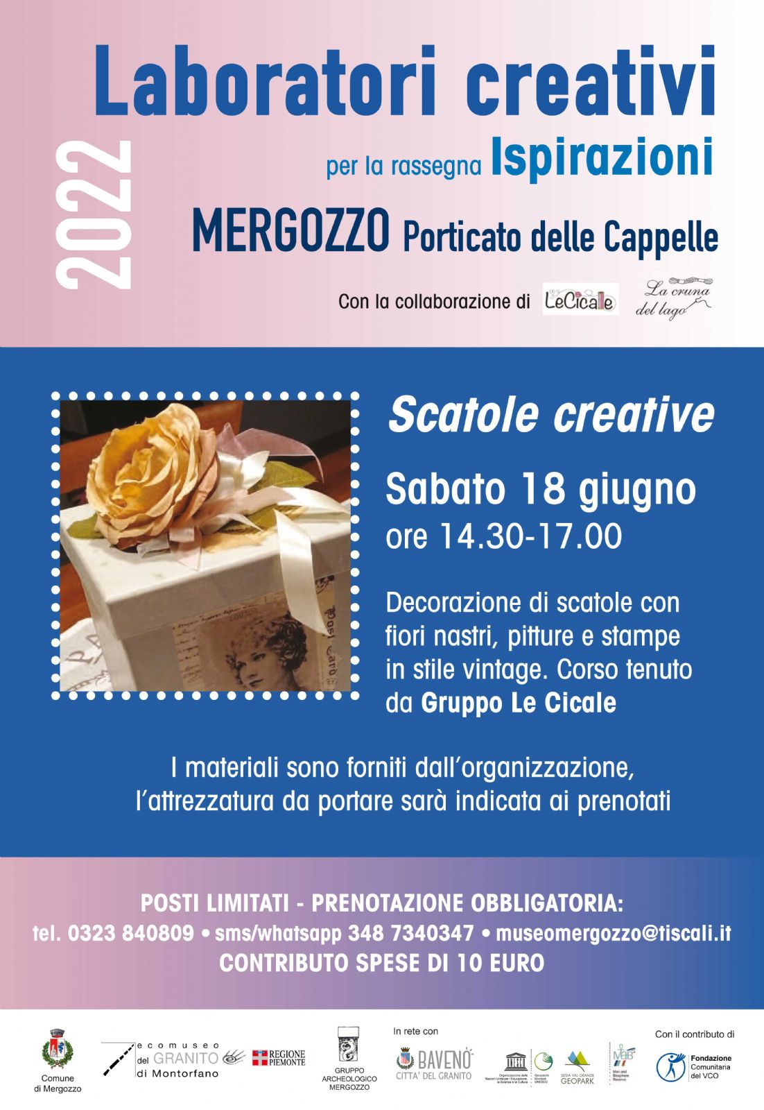 Nel Suggestivo Porticato delle Cappelle il Gruppo dell'Oratorio di Mergozzo LeCIcale organizzano per SABATO 18 GIUGNO un laboratorio di decorazione legato alle scatole .