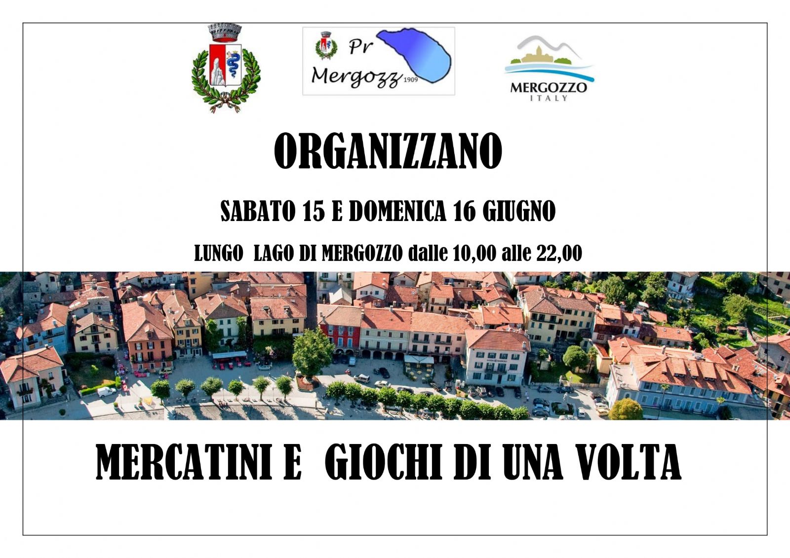 L' Associazione Turistica di Mergozzo in collaborazione con il Comune di Mergozzo organizza per sabato 15 e domenica 16 Giugno in Piazza Cavour e Lungo Lago di Mergozzo " MERCATINI ARTIGIANALI E GIOCHI DI UNA VOLTA"
