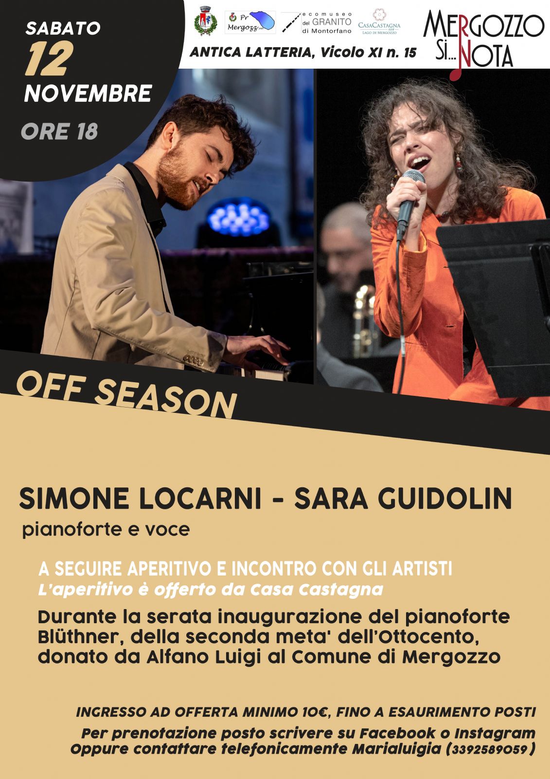 L'evento con programmazione preserale prevede un concerto pianoforte e voce con gli artisti