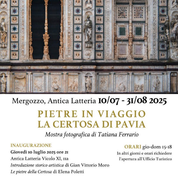Presso l’Antica Latteria, in Vicolo XI, 11a, verrà infatti inaugurata la mostra “Pietre in viaggio. La Certosa di Pavia” con fotografie di Tatiana Ferrario, dando continuità alla proposta del 2024 che aveva presentato le pietre dei laghi al Cimitero Monumentale di Milano”.
