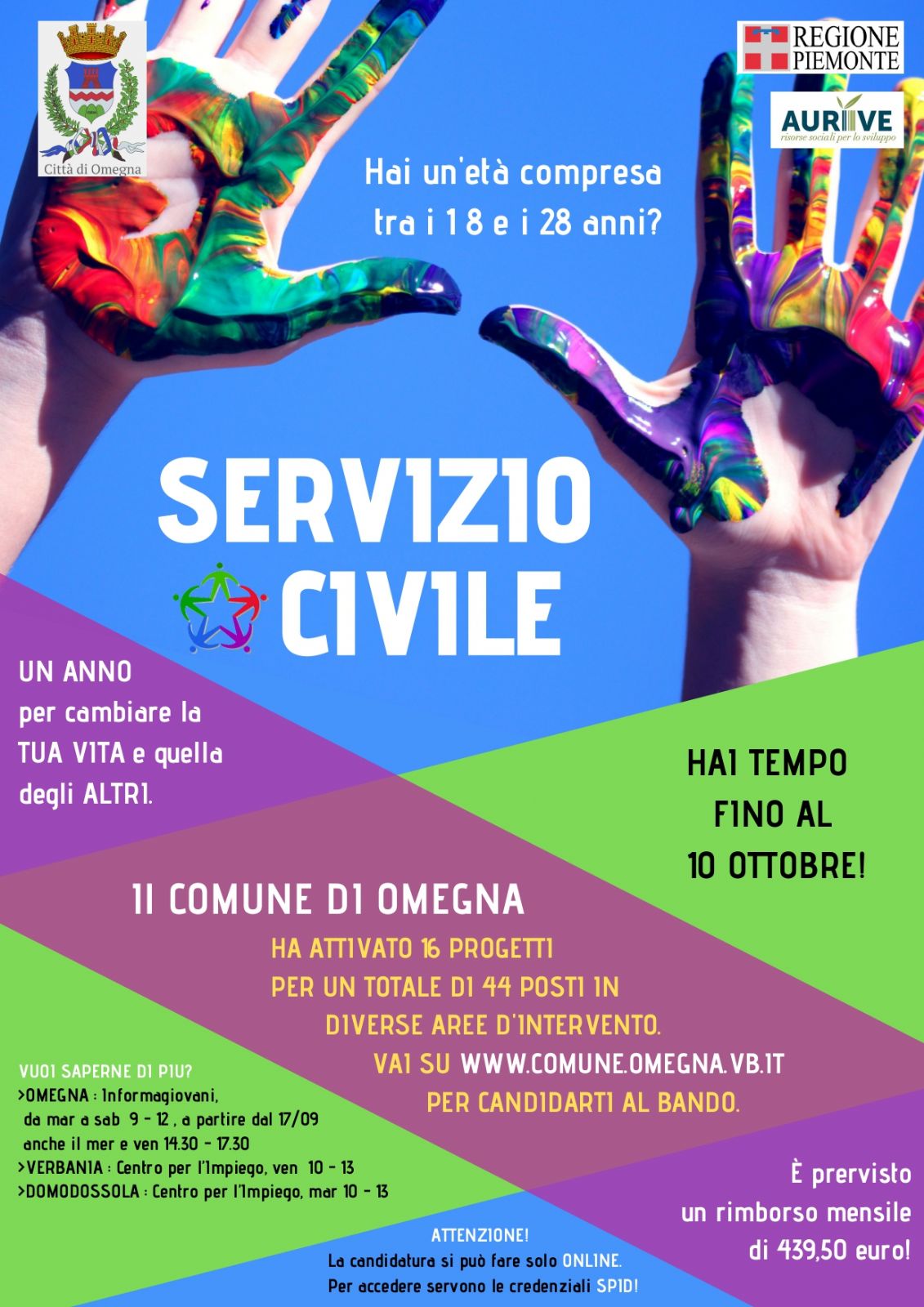 a Omegna, presso l’Informagiovani, in via XI settembre 9 (all’interno dello stabile della Biblioteca, tel. 0323 88.72.35), nei seguenti orari :
