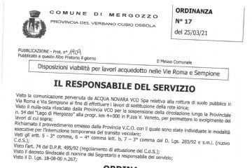 Manutenzione Straordinaria Acquedotto Mergozzo - CHIUSURA VIA ROMA