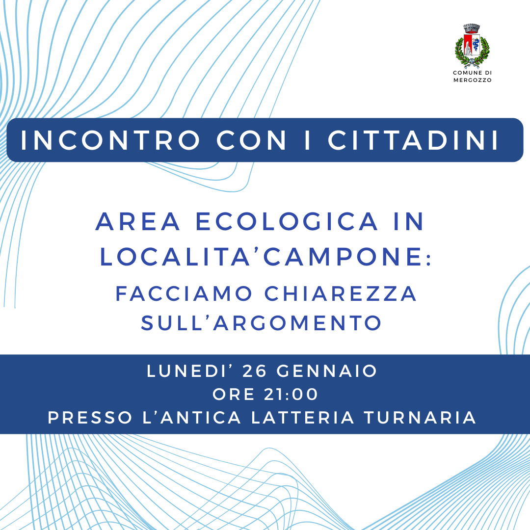 L'Amministrazione Comunale invita la cittadinanza ad un incontro pubblico sul tema del progetto dell'area ecologica in Località Campone.