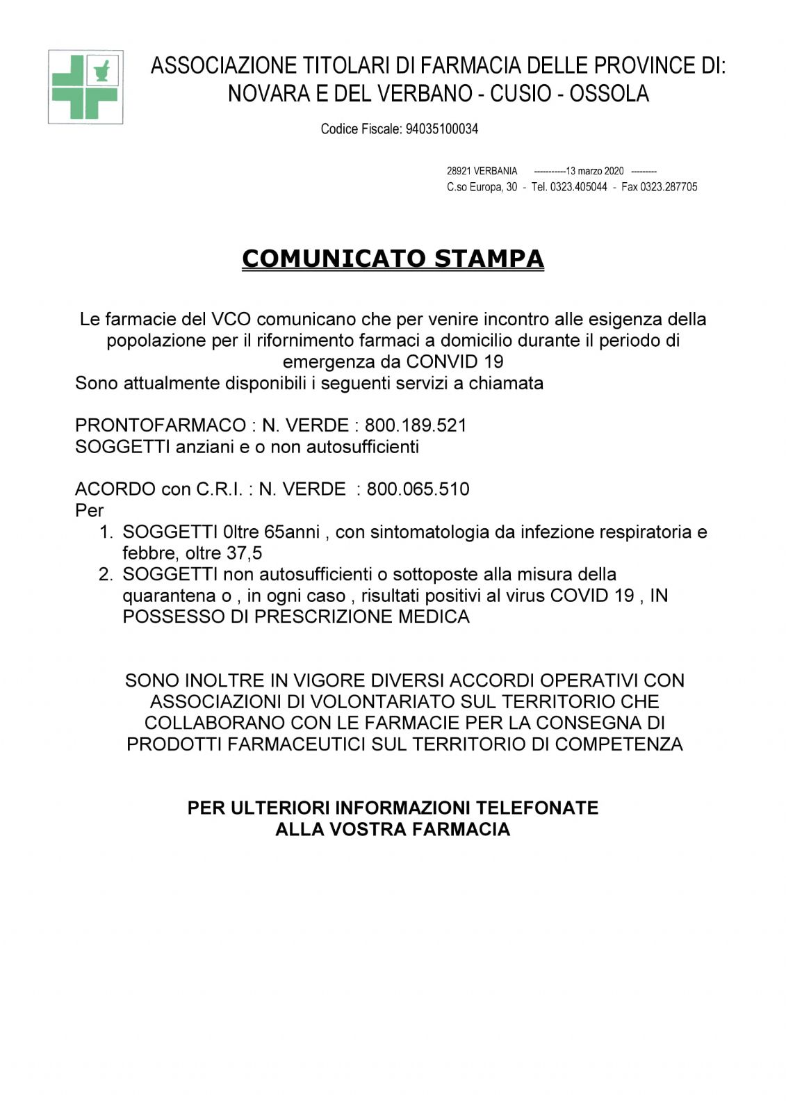 - COMUNICATO STAMPA ASSOCIAZIONE FARMACIE NOVARA E VCO[.pdf 31,78 Kb - 13/03/2020]